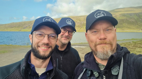 Silas, Tróndur og Hallur liggja aftur upp á lúr við kikaranum